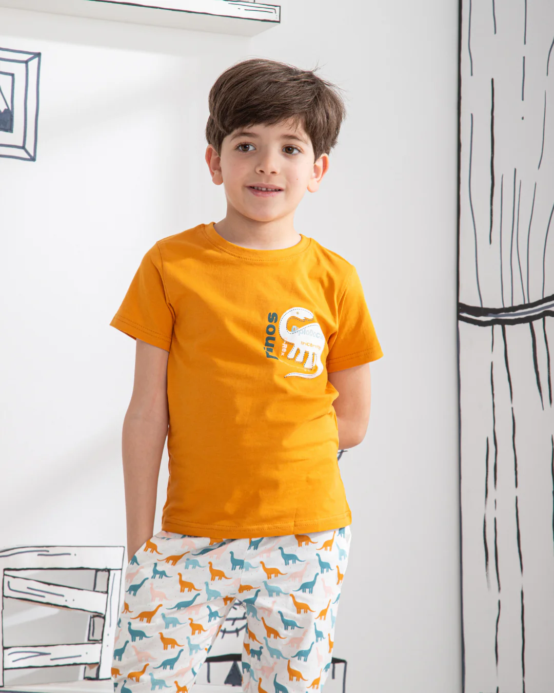 Dinos بيجاما اطفالي اولادي نص كم وبنطلون قطن
