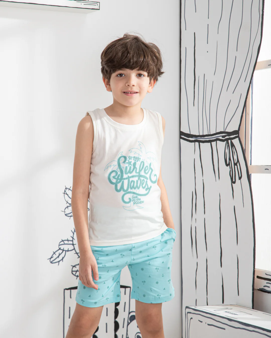 Surfer waves بيجاما اولادي كات و شورت قطن