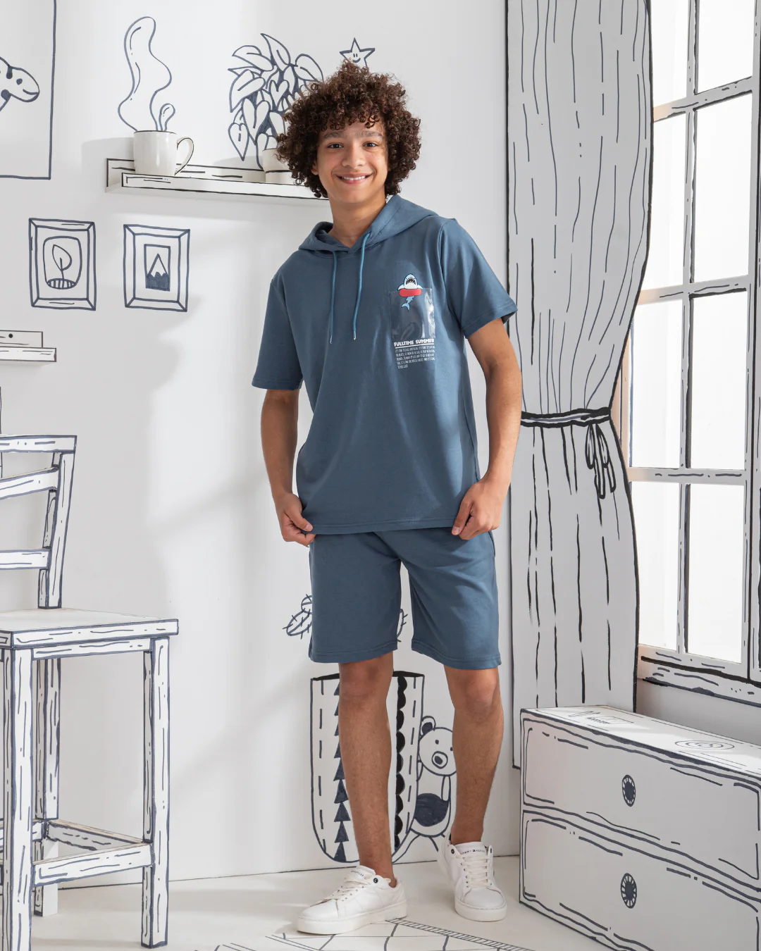 Funny Shark بيجاما أولادي نُص كُم بكابيشون
